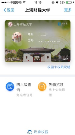 打开支付宝APP--卡包--“上海财经大学”校园卡通道管理。